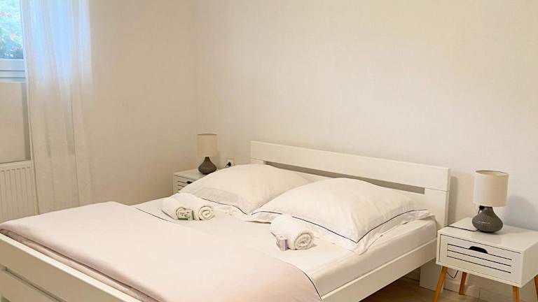 Die Ferienwohnung umfasst zwei Schlafzimmer, ein Wohnzimmer mit Flachbild-TV, eine gut ausgestattete Küche und ein Badezimmer mit Dusche und Badewanne. Zudem steht eine Terrasse zur Verfügung, die zum Grillen einlädt. Die Unterkunft ist klimatisiert und verfügt über Nichtraucherzimmer sowie Einrichtungen für Familien.