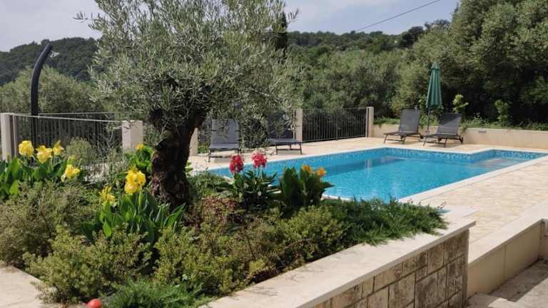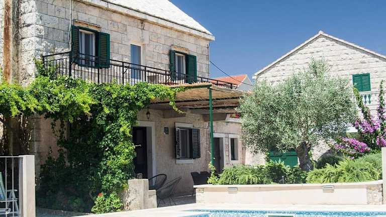 Das Holiday House mit Swimmingpool in Selca auf der Insel Brac bietet eine komfortable und klimatisierte Unterkunft mit einem Aussenpool. Die Themen dieses Ferienhauses sind Familienfreundlichkeit und Erholung. Die Unterkunft präsentiert sich mit einer einladenden Terrasse und Blick auf das Meer und ist perfekt für einen entspannten Aufenthalt.
