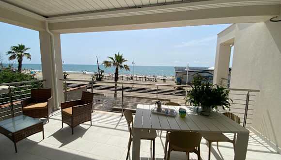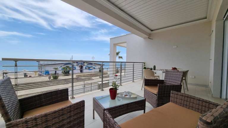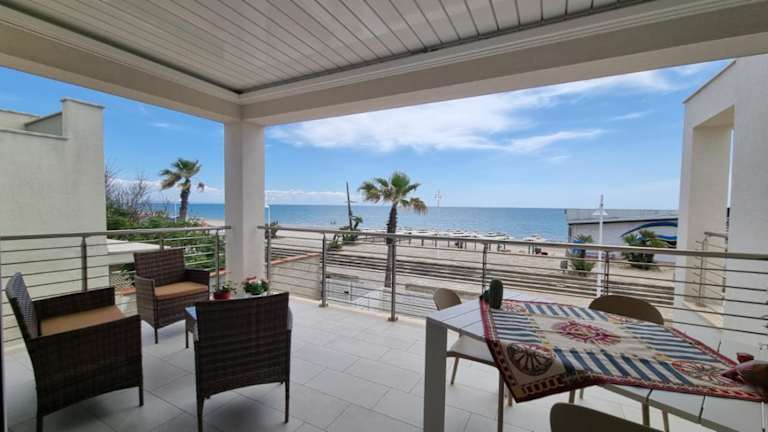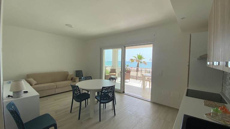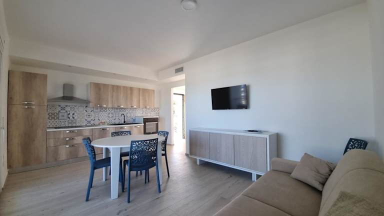 Die Ferienwohnung bietet eine Terrasse mit Meerblick, zwei Schlafzimmer, ein Wohnzimmer mit einem Satelliten-Flachbild-TV, eine gut ausgestattete Küche sowie ein Badezimmer mit Bidet und Dusche.