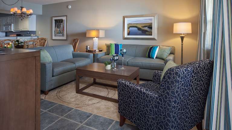 Die Zimmer sind klimatisiert und verfügen über einen Balkon oder eine Terrasse mit Meerblick. Sie sind ausgestattet mit einem Queensize-Bett, einem Kingsize-Bett oder einem Sofabett, sowie separates Schlafzimmern. Zur weiteren Ausstattung gehören ein Kühlschrank, ein Herd, eine Mikrowelle, eine Tee-/Kaffeemaschine und ein Geschirrspüler. Die Badezimmer bieten eine Dusche und eine Whirlwanne sowie Kosmetikartikel und einen Haartrockner. Zustellbetten sind auf Anfrage verfügbar und es sind Familien- und Nichtraucherzimmer buchbar.