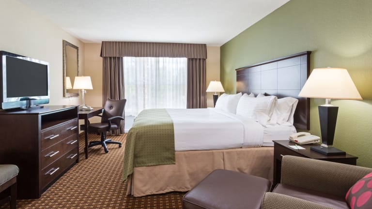 Das Holiday Inn Daytona Beach LPGA Boulevard bietet eine angenehme Unterkunft in einem 3-stöckigen Gebäude mit 96 Nichtraucherzimmern. Zu den Einrichtungen gehören ein Aufzug, ein Kamin für eine behagliche Atmosphäre, eine Gepäckaufbewahrung, ein Safe und ein Getränkeautomat. Ein Business-Center, verschiedene Konferenzräume sowie ein Supermarkt und Souvenirladen bereichern das Angebot.