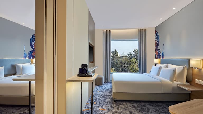 Die klimatisierten Zimmer sind mit einem Kleiderschrank, einem Safe, einem Flachbild-TV sowie einem eigenen Badezimmer mit Dusche ausgestattet. Jedes Zimmer ist mit Bettwäsche und Handtüchern versehen. Es sind Schallisolierte Zimmer verfügbar, ebenso Familienzimmer und behindertengerechte Einrichtungen.