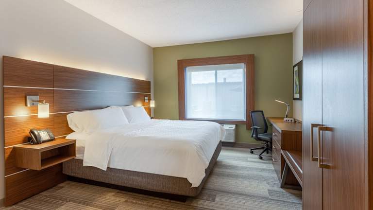 Das Holiday Inn Express Hotel & Suites Burlington hat 76 Zimmer und liegt direkt am Highway 34. Zur Ausstattung gehören ein Aufzug, eine Rezeption, ein TV-Raum, sowie weitere Annehmlichkeiten wie ein Safe, ein Geldautomat und ein Getränkeautomat. Das Hotel bietet rollstuhlgerechte Einrichtungen und ein Business-Center.