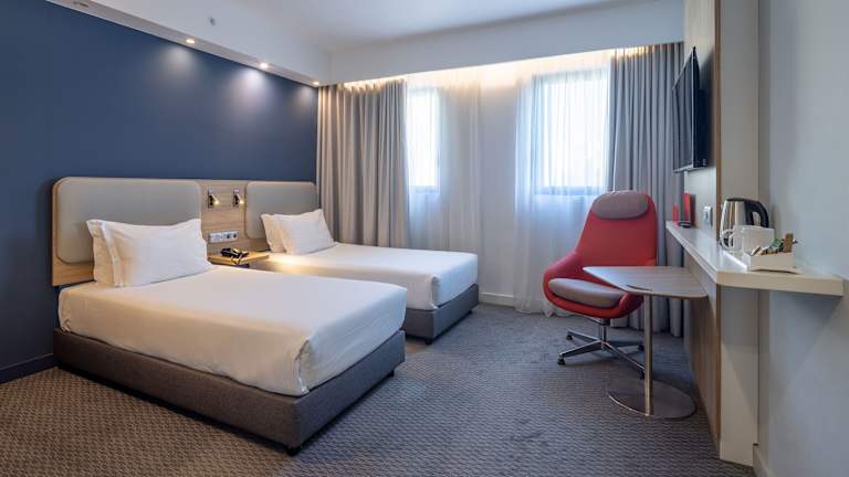 Das Holiday Inn Express Porto City Centre bietet moderne und funktionale Zimmer, ideal für Reisende, die Komfort und Bequemlichkeit im Zentrum von Porto suchen. ️ Zimmertypen Das Hotel verfügt über 105 Zimmer mit unterschiedlicher Ausstattung: Standardzimmer mit 1 Doppelbett: ca. 15 m², bietet Platz für bis zu 2 Personen. Standardzimmer mit 2 Einzelbetten: ca. 16 m², ideal für 2 Gäste. Standardzimmer mit 1 Doppelbett und Schlafsofa: ca. 18 m², bietet Platz für bis zu 3 Personen. Standard-Mehrbettzimmer: ca. 16 m², mit 2 Einzelbetten und 1 Schlafsofa, bietet Platz für bis zu 3 Personen. Standardzimmer für Personen mit eingeschränkter Mobilität