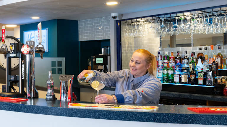 Das Hotel stellt eine Auswahl an gastronomischen Einrichtungen zur Verfügung. Ein Restaurant, ein Frühstückssaal und eine Bar laden ein. Morgens wird ein kontinentales Frühstücksbuffet angeboten. Auch bei speziellen Bedürfnissen, wie Kindermenüs, wird für Abhilfe gesorgt. In der Lounge-Bar sind verschiedene Getränke erhältlich, darunter Weine, Biere und Spirituosen. Zudem können Pizzas rund um die Uhr bestellt werden.