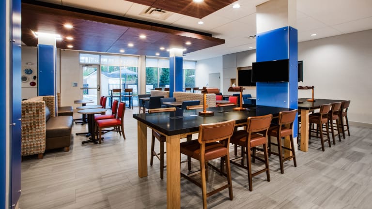 Das Holiday Inn Express & Suites Atlanta N - Woodstock ist eine moderne Unterkunft mit freundlichem Personal, das bei Fragen gerne behilflich ist. Die Einrichtung umfasst eine Gepäckaufbewahrung, einen Safe sowie rollstuhlgerechte Einrichtungen und einen Aufzug. Gäste profitieren von kostenlosen Parkiermöglichkeiten und einem TV-Raum.