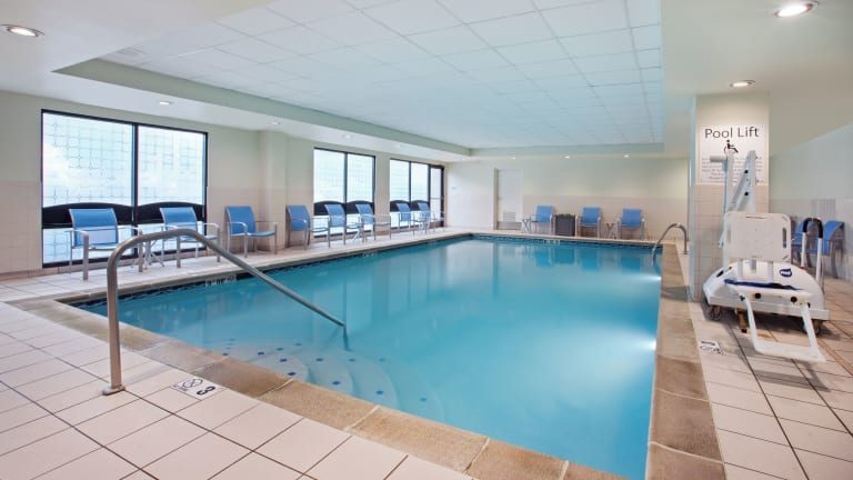 Das Holiday Inn Express & Suites Cincinnati Riverfront bietet 151 Nichtraucherzimmer auf 6 Etagen, die über einen Aufzug erreichbar sind. Die Rezeption wird von englischsprachigem Personal besetzt, welches den Gästen mit Rat und Tat zur Seite steht. Zur Ausstattung gehören eine Garderobe, Gepäckaufbewahrung, ein Safe, ein Geldautomat sowie ein Getränkeautomat. Das Hotel bietet zudem WLAN, behindertengerechte Einrichtungen und Stellplätze für Velofahrer. Es stehen ein TV-Raum und ein Spielzimmer zur Verfügung. Ein eigener Shuttlebus, eine Münzwäscherei sowie ein Wäscheservice runden das Angebot ab.