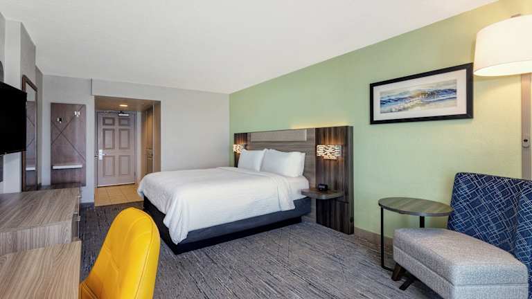 Das Holiday Inn Express & Suites Oceanfront bietet ein 11-stöckiges Gebäude mit 100 Zimmern und einem Aufzug. Die Einrichtung umfasst eine Rezeption, wo das Ein- und Auschecken jederzeit möglich ist, sowie eine Gepäckaufbewahrung, einen Safe, Automaten und einen TV-Raum. Das Haus hat Rollstuhlgerechte Einrichtungen sowie einen Supermarkt und weitere Geschäfte in der Nähe. Die Gäste haben die Möglichkeit, in einer Garage (gegen Gebühr) oder auf einem Parkplatz zu parkieren. WLAN steht den Gästen kostenlos zur Verfügung.