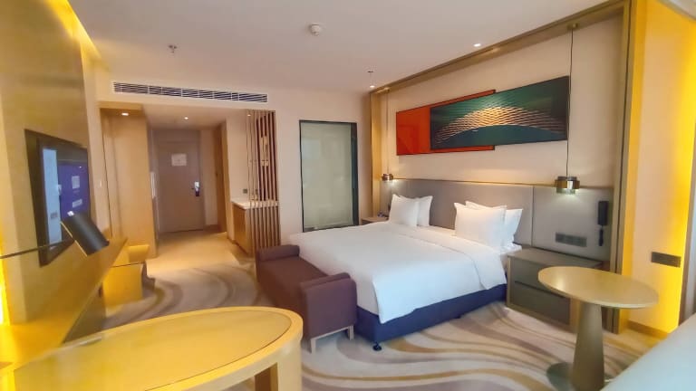 Die Zimmer sind ausgestattet mit einem Schreibtisch, Klimaanlage, einem Safe und einem TV, um den Gästen eine angenehme Bequemlichkeit zu bieten.
