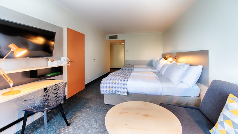 Das Holiday Inn München Süd verfügt über 320 Zimmer in drei verschiedenen Kategorien. Alle Zimmer sind mit Badezimmer mit Badewanne, Balkon oder Terrasse, Klimaanlage, Flat-Screen-TV, Pay-TV, Highspeed- Internetzugang, Wireless LAN, Minibar und Tea- & Coffee Making Facilities ausgestattet. Die größeren Executive-Zimmer verfügen zusätzlich über eine separate Sitzecke und einen komfortablen Arbeitsbereich sowie im Badezimmer über eine hochwertige Pflegeserie und einen Kosmetikspiegel. Unsere geräumige Suite (60m²) verfügt über einen begehbaren Kleiderschrank, zwei Bäder, zwei Fernseher und einen kleinen Konferenzbereich und kann auf Wunsch über eine Verbindungstür um ein weiteres Zimmer vergrößert werden.