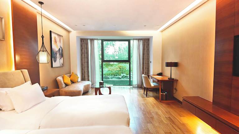 Im chinesischen Restaurant werden authentische Huaiyang-Küche und kantonesische Spezialitäten angeboten. Eine breite Auswahl an internationalen Gerichten ist im Yue Café erhältlich. Snacks sind ebenfalls an der Snackbar erhältlich. Das Hotel legt Wert darauf, ein kinderfreundliches Buffet anzubieten.