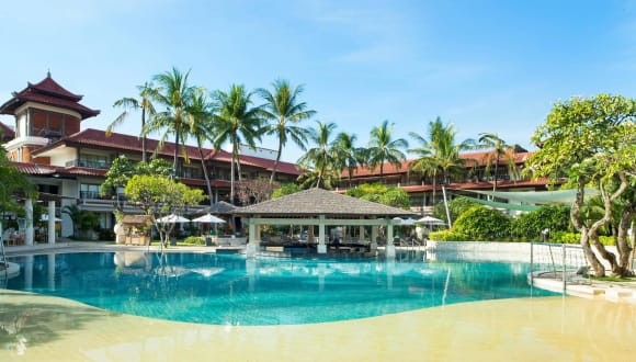Das Hotel befindet sich im ruhigen Ort Tuban, in erster Strandlage direkt am Sandstrand von Segara. Die Einkaufsarkaden in Kuta sind nur 10 Minuten entfernt, während der Internationale Flughafen Ngurah Rai in ca. 10 Minuten erreichbar ist.