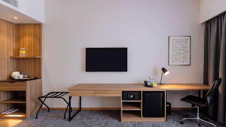 Jedes Zimmer ist mit einem Schreibtisch ausgestattet, verfügt über einen TV und einen Haartrockner. Es sind keine spezifischen Informationen zu den Zimmergrössen oder -arten vorhanden.