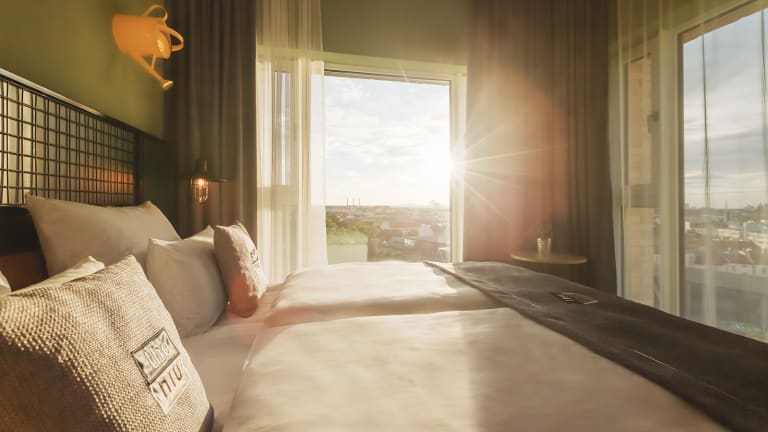 Im beliebten Stadtteil Schöneberg befindet sich unser the niu Dwarf, das seinen Namen dem naheliegenden Kleingartengelände verdankt. „Dwarf“ (Englisch für Zwerg) bezeichnet in diesem Fall den Gartenzwerg und steht symbolisch für das einzigartige und hippe Ambiente des Hotels. Gäste dürfen sich über ein Interior mit Ironie, stylischen Gartenzwerg-Akzenten und satten Grüntönen freuen: designgeladen und originell - genau das Richtige für den Standort Berlin. Dank innovativer Ausstattung dient dein Hotelzimmer als perfekter Rückzugsort: neben Highspeed-WLAN erwarten dich ein Flatscreen mit Mirroring-Funktion sowie eine soundstarke Bluetooth-Box. Genug vom Alleinsein? Genieße deinen Aufenthalt bei Bar-Food und Drinks in unserer Living Lobby. Schluss mit „Stubenhocken“? Dank der nur wenige Zwergenschritte entfernten S-Bahn-Station „Bahnhof Schöneberg“ erreichst du Berlins Stadtzentrum kinderleicht.