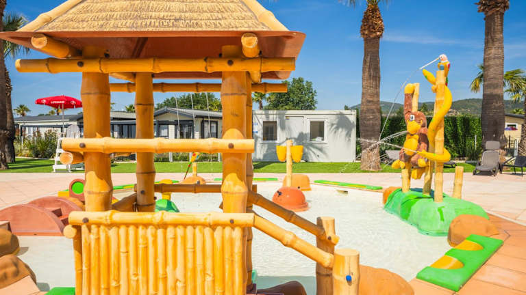 Die Mobilheime im Resort verfügen über eine möblierte Terrasse, einen Sitzbereich sowie eine komplett ausgestattete Küchenzeile mit Mikrowelle und Kühlschrank. Jedes Mobilheim hat ein eigenes Bad mit Dusche.