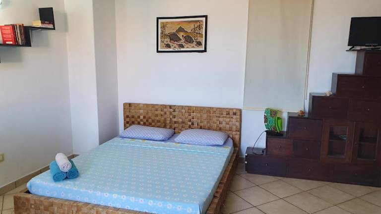 Die Ferienwohnung ist ausgestattet mit 1 Schlafzimmer, 1 Badezimmer, Bettwäsche, Handtüchern, einem Flachbild-TV, einem Essbereich und einer voll ausgestatteten Küche. Eine Terrasse mit Stadtblick rundet die Ausstattung ab. Für zusätzlichen Komfort können Handtücher und Bettwäsche gegen Aufpreis bereitgestellt werden.