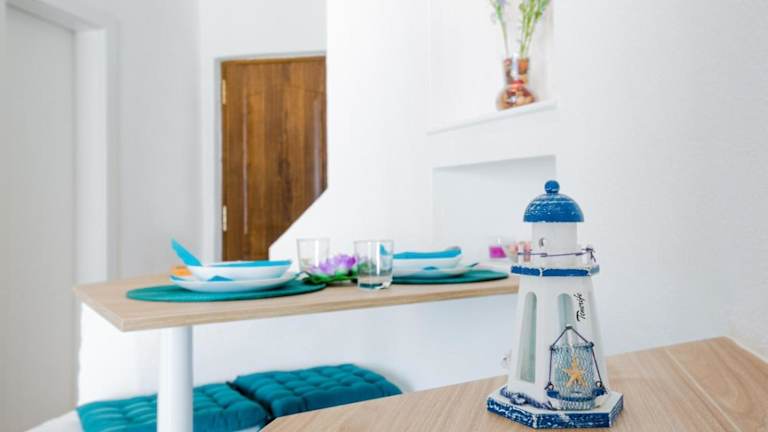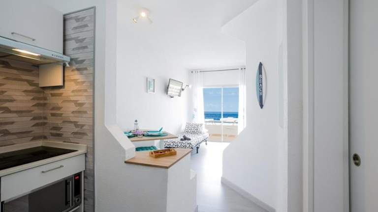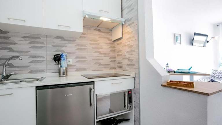 Das Studio umfasst ein Schlafzimmer, ein Wohnzimmer, ein Flachbild-TV und eine gut ausgestattete Küchenzeile mit Kühlschrank und Mikrowelle. Zudem beinhaltet es ein Badezimmer mit Dusche, Handtüchern und Bettwäsche werden bereitgestellt. Ein Balkon mit Meerblick ergänzt die Ausstattung.