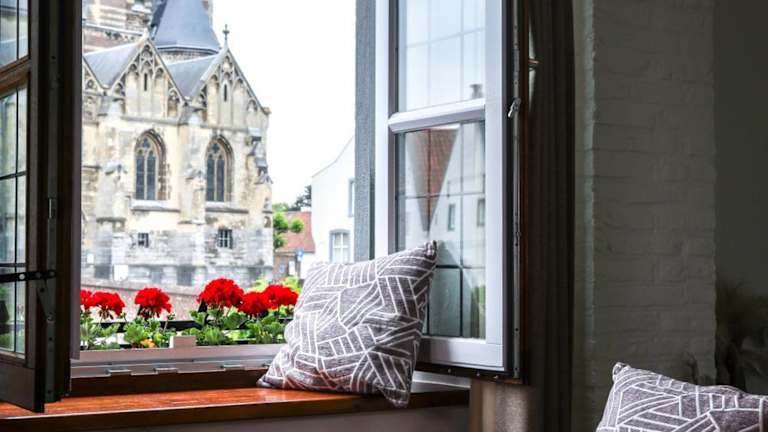 Das Hotel Crasborn befindet sich im historischen Zentrum von Thorn, gegenüber der Klosterkirche, die bis ins Jahr 970 n. Chr. zurückreicht. Die Lage bietet Gästen die Möglichkeit, die charmante Umgebung zu erkunden.