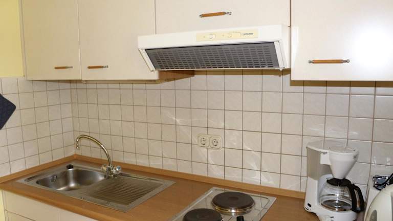 Die Wohneinheiten verfügen über eine voll ausgestattete Küche mit Kühlschrank, Herdplatte, Toaster und Kaffeemaschine. Ein Essbereich ist ebenfalls vorhanden.