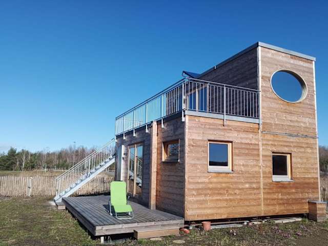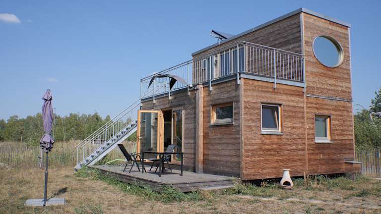 Das Holzhaus am Bergheider See befindet sich in Buschmühle, umgeben von einer idyllischen Naturlandschaft. In der Nähe finden Gäste zahlreiche Möglichkeiten zur Erkundung der Umgebung, insbesondere zum Velofahren.