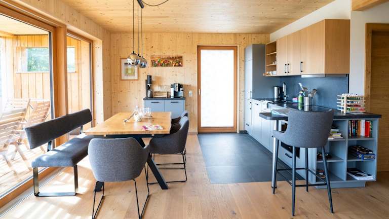 Die Übernachtungsmöglichkeiten sind mit einer Terrasse oder einem Balkon ausgestattet und bieten eine heimelige Atmosphäre.