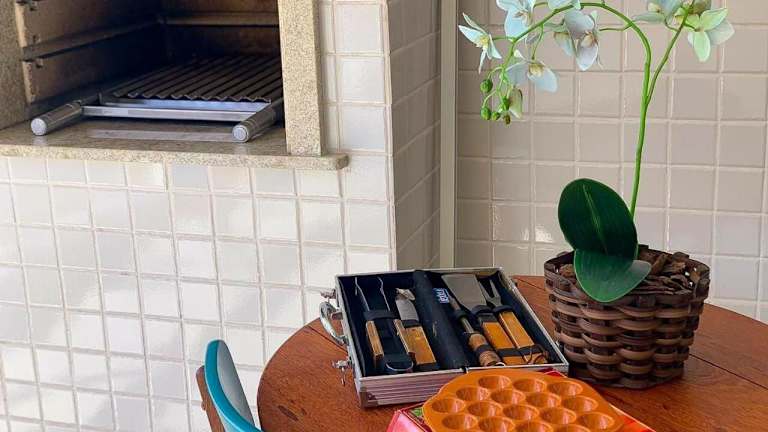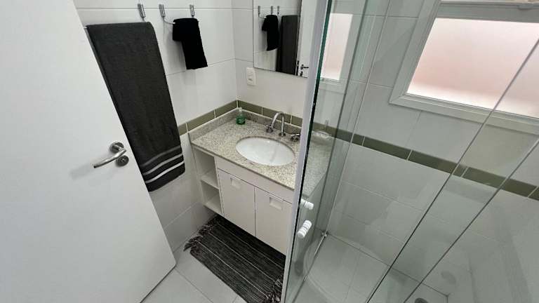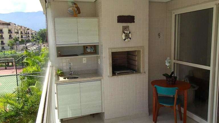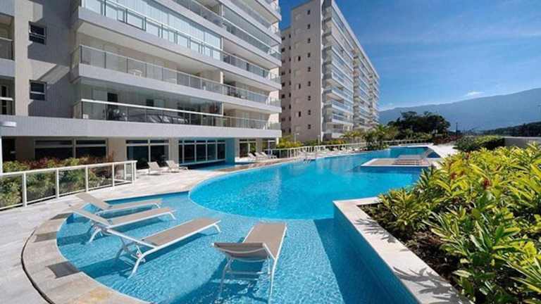 Das Ferienhaus Home 8 I Apto com vista para mar liegt nur 200 Meter vom Strand Praia da Enseada entfernt in Bertioga. Die Umgebung bietet eine malerische Küste und ist ideal für Strandferien.