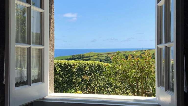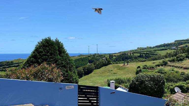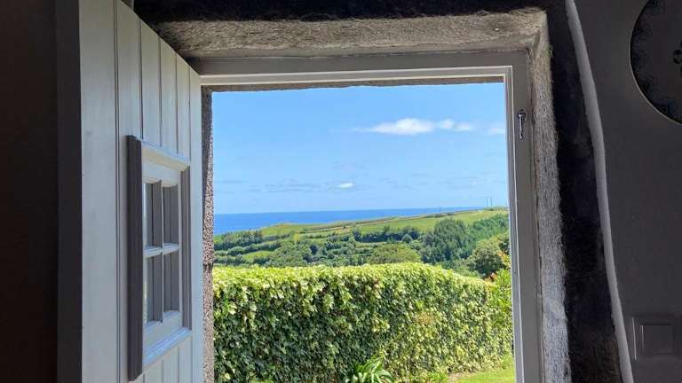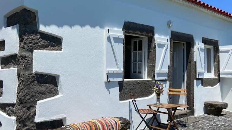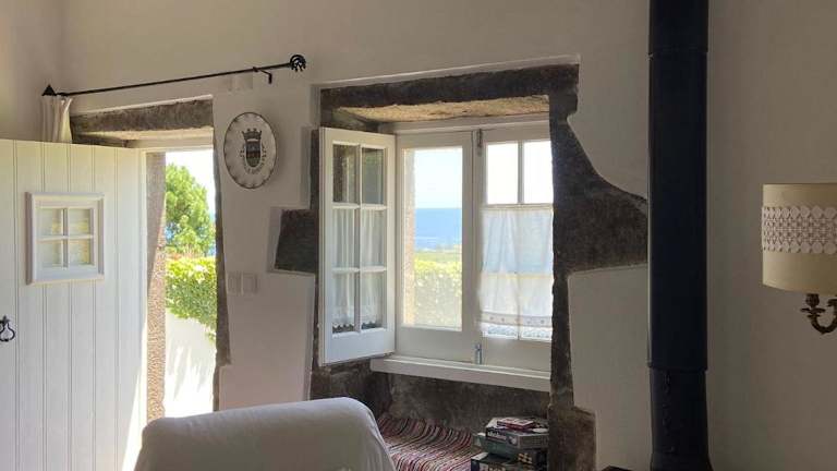Home Near the Clouds - Refúgio ist ein charmantes Ferienhaus, das eine Veranda sowie einen Patio mit Meerblick bietet. Es hat eine heimelige Atmosphäre und eignet sich ideal für erholsame Ferien.