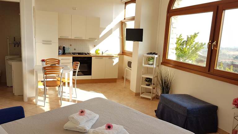 Das Hotel Home Suite Home liegt in Cavaion Veronese und ist nur 16 km vom Gardaland entfernt. Die Terme Sirmione - Virgilio erreichen Sie nach 26 km. Die Umgebung bietet zahlreiche Möglichkeiten zum Radfahren und erkunden der schönen Landschaft. In der Nähe befinden sich auch der Turm von San Martino della Battaglia (27 km entfernt) und die Burg von Sirmione (29 km entfernt). Der nächstgelegene Flughafen Verona ist 23 km entfernt.