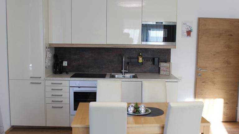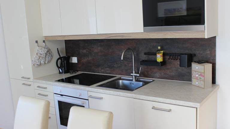 Die Ferienwohnung besteht aus einem Schlafzimmer, einem modernen Flachbild-TV mit Satellitenkanälen und einer gut ausgestatteten Küchenzeile, die mit einem Kühlschrank und einem Ofen ausgestattet ist. Des Weiteren bietet die Unterkunft ein Badezimmer mit einer Dusche. Handtücher und Bettwäsche werden bereitgestellt.