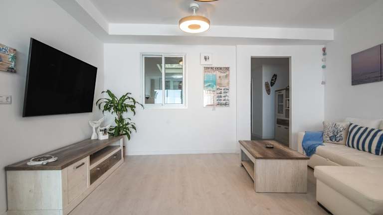 Home2Book Beachy Vibes Sea Side Apartment bietet Übernachtungsmöglichkeiten mit Annehmlichkeiten wie kostenlosem Wifi und einem Flachbild-TV. Die Ferienwohnung besteht aus 1 Schlafzimmer, einem Wohnzimmer und einer voll ausgestatteten Küche.