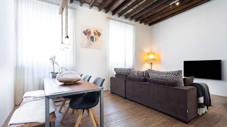 Die modernen Zimmer des Ferienhauses umfassen 2 Schlafzimmer und ein Wohnzimmer. Die Küche ist voll ausgestattet mit Kühlschrank und Kaffeemaschine. Das Badezimmer verfügt über ein Bidet und eine Dusche. Handtücher und Bettwäsche werden zur Verfügung gestellt.