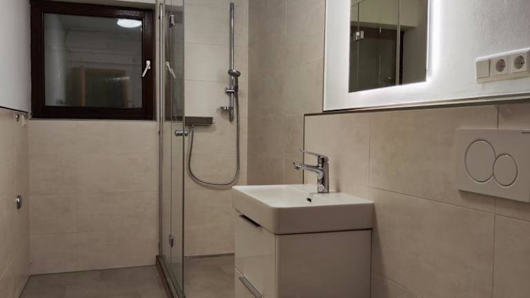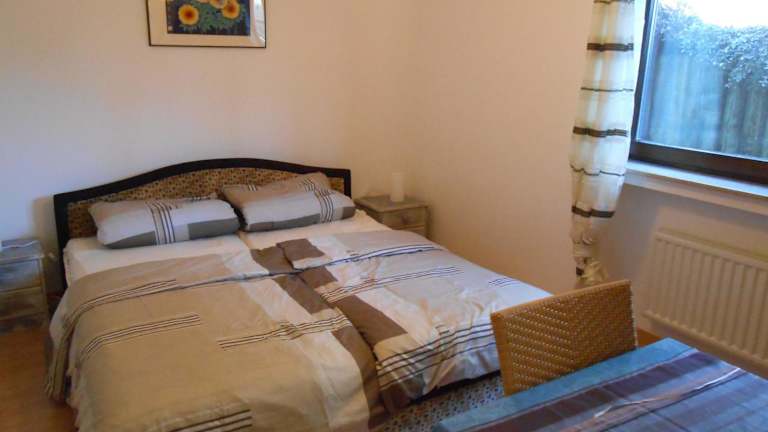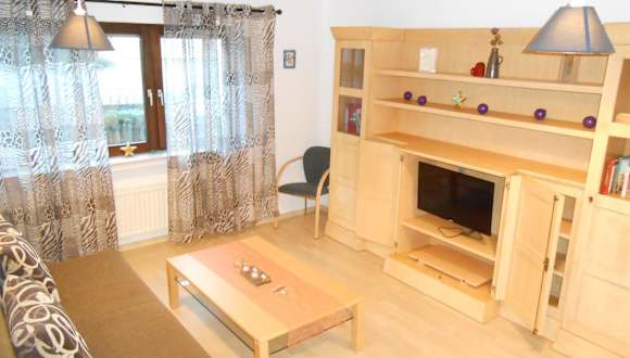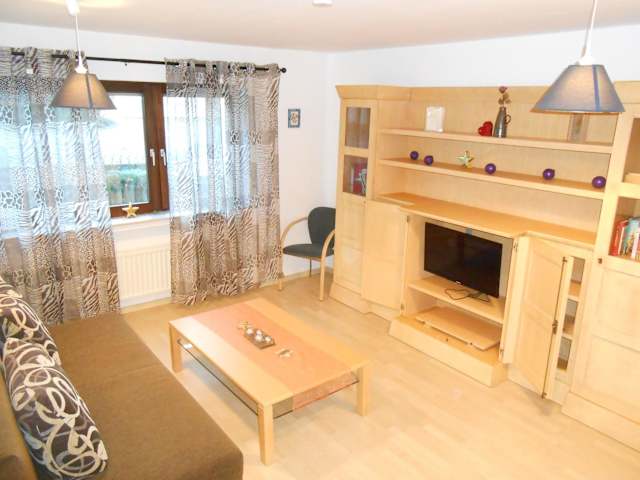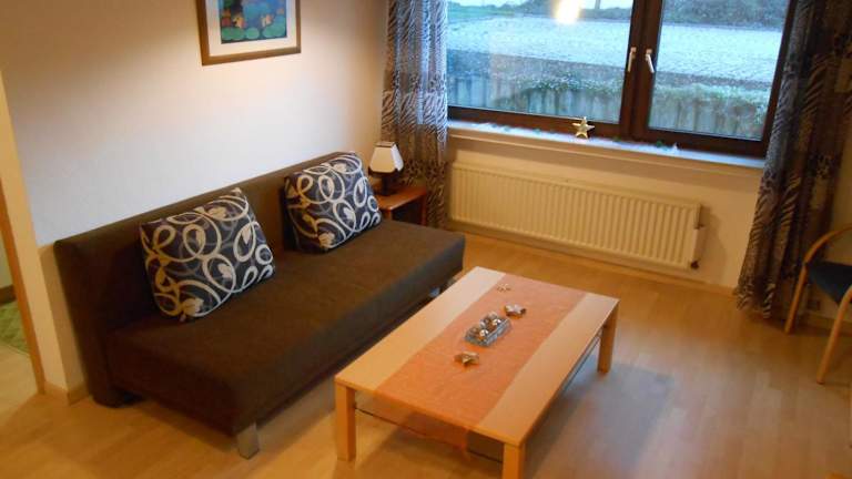 Die Ferienwohnung verfügt über ein Wohnzimmer, einen Essbereich, ein Schlafzimmer sowie ein Badezimmer mit Dusche. Die Küche ist ausgestattet mit einem Kühlschrank, einem Ofen und einer Mikrowelle. Einige Annehmlichkeiten wie Handtücher und Bettwäsche werden bereitgestellt.