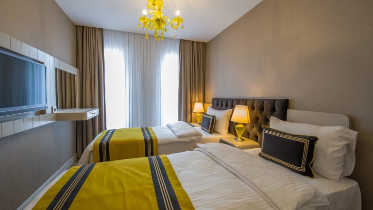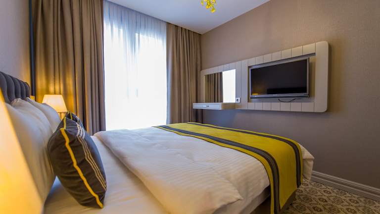 Das Homelike Hotel liegt in einer guten Lage im Stadtteil Şişli in Istanbul. Es ist nur 800 m vom Istanbul Congress Center entfernt und auch der U-Bahnhof Taksim und der Taksim-Platz sind in kurzer Entfernung erreichbar. In der Umgebung finden Sie eine Vielzahl von Restaurants, Geschäften und Unterhaltungsmöglichkeiten. Der Uhrturm von Dolmabahçe und die berühmte Istiklal Caddesi sind ebenfalls leicht zu erreichen. Der Flughafen Istanbul ist ca. 39 km entfernt und das Hotel bietet einen kostenpflichtigen Flughafentransfer an.