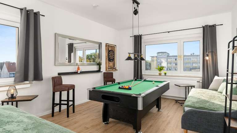 Die Unterkunft ermöglicht vielfältige Freizeitaktivitäten wie Billard, Darts und Velofahren in der Umgebung. Zudem steht eine Gemeinschaftsküche zur Verfügung, die eine gesellige Atmosphäre fördert. Weitere Sportmöglichkeiten in der Umgebung sind Wandern, Reiten und Bowling, jedoch häufig gegen zusätzliche Gebühren.
