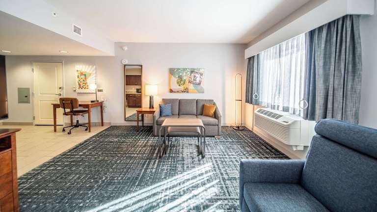 Die Zimmer sind klimatisiert und mit einem Wohnbereich, einer Küche und einem Badezimmer ausgestattet. Besonders Familienzimmer sowie rollstuhlgerechte Zimmer mit barrierefreiem Badezimmer sind verfügbar. Zur Ausstattung gehören ein Kühlschrank, ein Herd, eine Mikrowelle, ein Geschirrspüler, ein Schreibtisch sowie ein TV-Gerät. Die Badezimmer verfügen über eine Dusche, eine Badewanne und eine Whirlwanne.