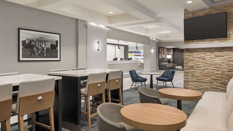 Das Homewood Suites by Hilton Washington bietet eine moderne und geräumige Unterkunft mit insgesamt 175 Nichtraucherzimmern. Die Rezeption ist rund um die Uhr besetzt, und es stehen verschiedene Einrichtungen wie ein Souvenirshop, ein Zeitungskiosk und ein Spielzimmer zur Verfügung. Die behagliche Atmosphäre wird durch einen Kamin unterstrichen, und die Gäste können in der Garage oder auf dem Parkplatz parkieren. Das Hotel ist zudem barrierefrei und bietet rollstuhlgerechte Einrichtungen.