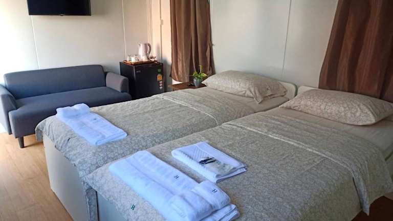 Die Zimmer sind schallisoliert und klimatisiert. Die Unterkunft bietet Familienzimmer und eine tägliche Reinigung der Zimmer an. Zudem liegt eine Nadeln und Hefte zur Verfügung, die jedoch nach dem Aufenthalt desinfiziert werden. Das Hotel garantiert auch die Einhaltung von Abstandsregeln und Sicherheitsrichtlinien.