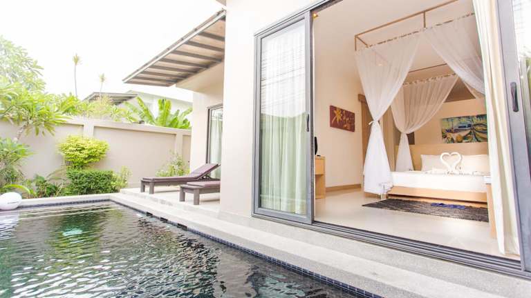 Die Honeymooner Pool Villa@Seastone befindet sich in der Strandregion Bang Tao, nur wenige Kilometer vom Wat Phra Thong und dem Nationalpark Khao Phra Thaeo entfernt. Die Lage ist ideal für Gäste, die die Ruhe der Natur suchen und zugleich in der Nähe der vielfältigen Freizeitmöglichkeiten sein möchten.