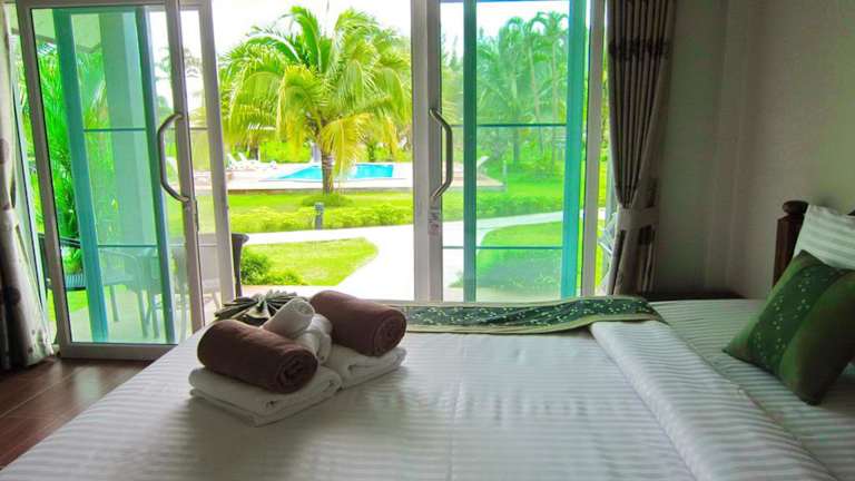 Die klimatisierten Zimmer sind ausgestattet mit einem Flachbild-TV, einem Safe und einem Kühlschrank. Jedes Zimmer verfügt über eine Terrasse mit Gartenmöbeln und einem Poolblick. Das eigene Bad ist mit einer Dusche ausgestattet. Weitere Informationen zur Ausstattung der Zimmer liegen nicht vor.
