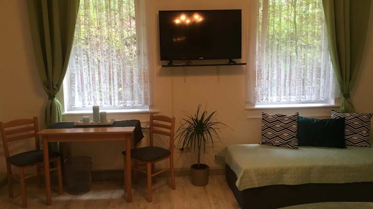 Die Zimmer in der Unterkunft Hopfengrund sind mit einem Kleiderschrank und einem Flachbild-TV ausgestattet. Zu den Annehmlichkeiten gehören Bettwäsche und Handtücher.