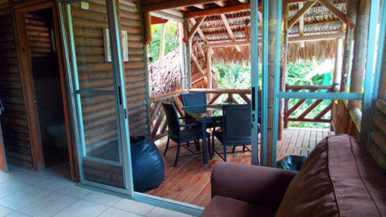 ein hotel mit 8 chalets die in einem waren botanischen garten