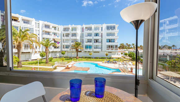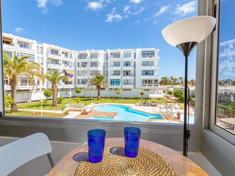Die CANARIAN HOLIDAY HOME - Luxury Condo near Yumbo ist eine Ferienwohnung mit Poolblick, die eine heimelige Atmosphäre bietet. Die Unterkunft ist klimatisiert und hat einen schönen Bergblick.