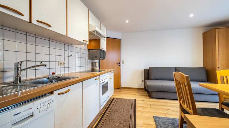 Die Wohneinheiten sind ausgestattet mit einem Flachbild-TV und einem eigenen Badezimmer mit Dusche und Haartrockner. Die Küche bietet einen Kühlschrank, einen Geschirrspüler und einen Ofen. Einige Zimmer verfügen über eine Terrasse oder einen Balkon mit Blick auf die Berge oder den Garten.