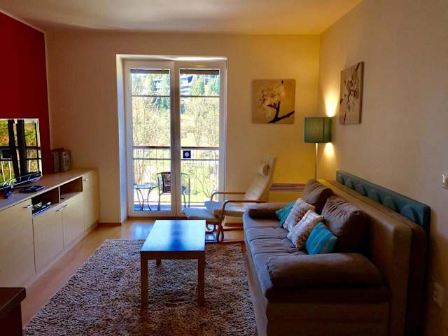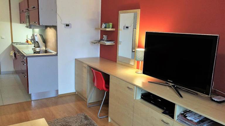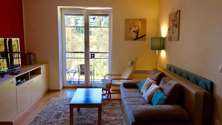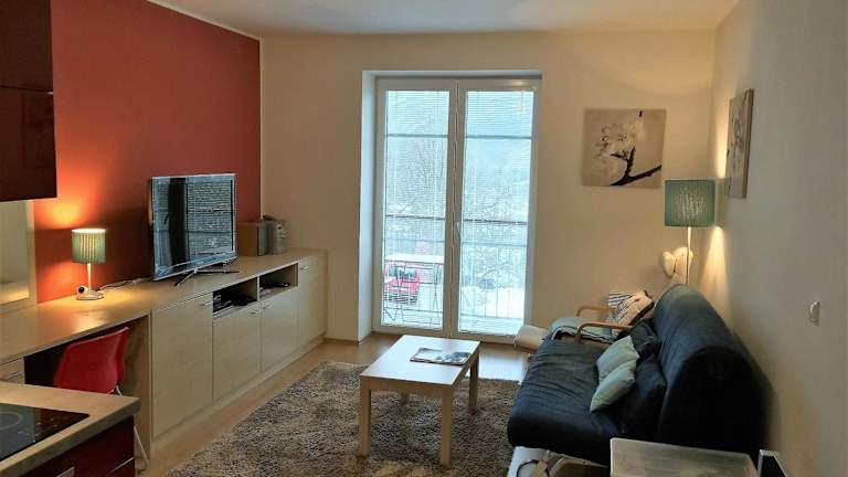 Die Ferienwohnung verfügt über einen Balkon mit Blick auf die Berge, ein Schlafzimmer, ein Wohnzimmer mit Flachbild-TV, eine gut ausgestattete Küche mit Kühlschrank und Geschirrspüler sowie ein Badezimmer mit Badewanne. Handtücher und Bettwäsche werden zur Verfügung gestellt.