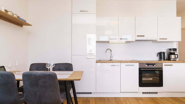 In der Unterkunft ist ein Restaurant vorhanden, welches verschiedene Gerichte anbietet. Lebensmittellieferungen sind ebenfalls möglich, allerdings können zusätzliche Gebühren anfallen. Die Küche der Ferienwohnung ist mit einem Kühlschrank, Geschirrspüler, Ofen, Kaffeemaschine und Wasserkocher ausgestattet, was die Zubereitung eigener Mahlzeiten erleichtert.