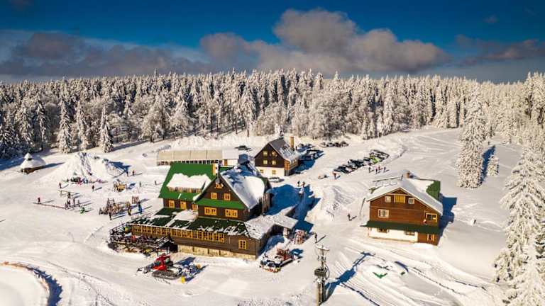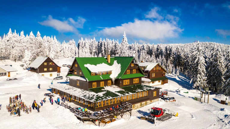 In Horský hotel Paprsek werden Buffet- und kontinentale Frühstücksoptionen angeboten. Das Hotel verfügt über ein Restaurant und eine Bar.