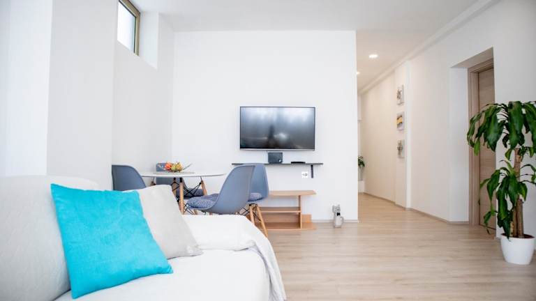 Die Ferienwohnung ist klimatisiert und verfügt über 2 Schlafzimmer, ein Wohnzimmer sowie eine voll ausgestattete Küche mit Kühlschrank und Kaffeemaschine. Das Badezimmer ist mit einem Bidet und einer Dusche ausgestattet. Handtücher und Bettwäsche werden bereitgestellt.