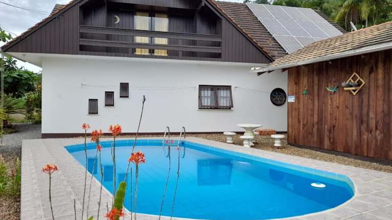 Die Unterkunft Hospedagem Tia Nena befindet sich in Pomerode, in der Region Santa Catarina, etwa 33 km vom Busbahnhof Blumenau entfernt. In der Nähe liegen das Kongresszentrum Vila Germanica sowie das Theater Carlos Gomes.