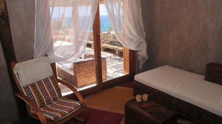 Das Hospedaje Boutique Ckamur bietet eine grosszügige Terrasse mit Meerblick und ist im heimeligen Landhausstil dekoriert. Die gemütliche Atmosphäre lädt zum Verweilen ein und sorgt für eine erholsame Ferienzeit.