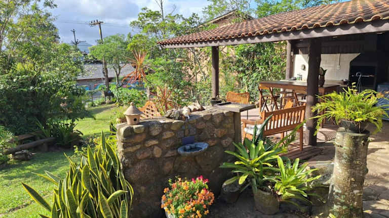 Das Hospedaria Noite Lunar - Praia do Rosa bietet Übernachtungsmöglichkeiten in einer heimeligen Atmosphäre mit verschiedenen Annehmlichkeiten. Zu den besonderen Einrichtungen gehören ein Garten, kostenloses Wifi und eine kostenlose Parkiermöglichkeit für Gäste mit dem Auto. Die Unterkunft bietet zudem eine Gemeinschaftsküche, einen Whirlpool sowie Grillmöglichkeiten. Die Atmosphäre ist entspannt und eignet sich ideal für Ferien mit der Familie oder Freunden.